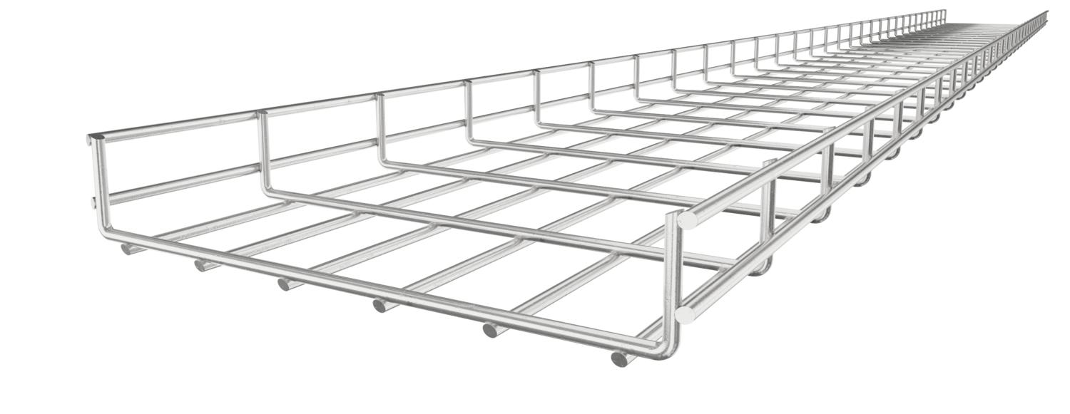 Gitterrinne aus punktgeschweißten Stahldrähten mit der Seitenhöhe 55 mm.