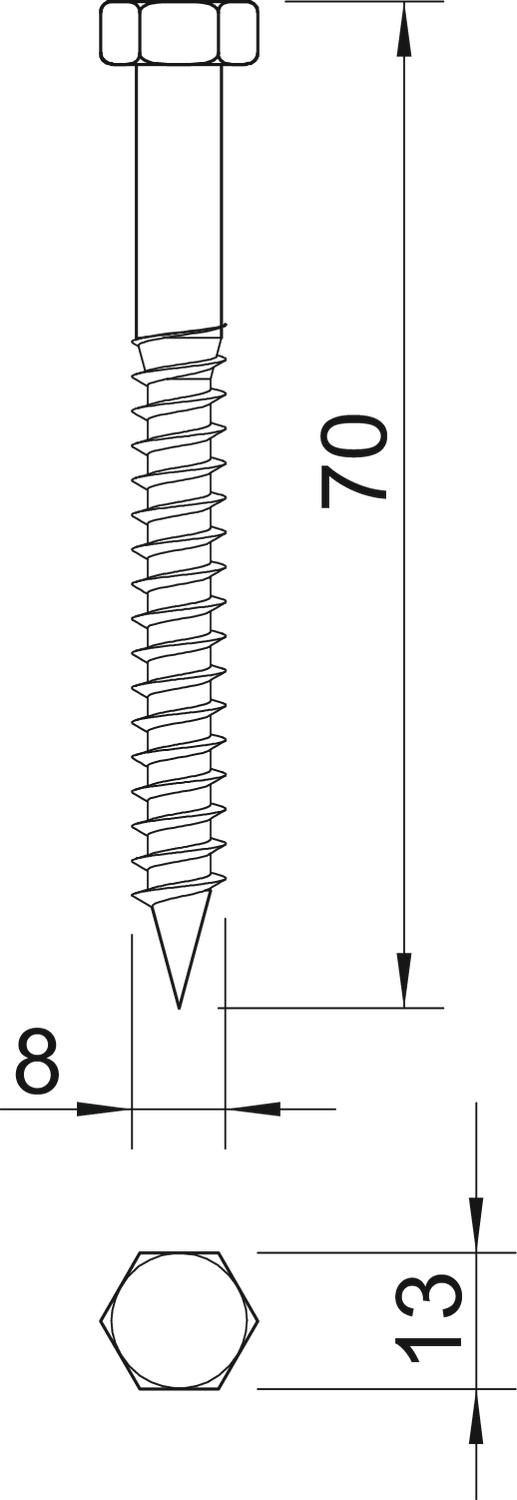 Sechskantschraube nach DIN 571 mit Holzgewinde. Geeignet für Dübel Typen 910.