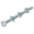 Sechskantschraube zur universellen Befestigung von Konstruktionsbauteilen. Inklusive Sechskantmutter und 2 Unterlegscheiben.