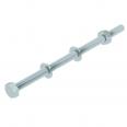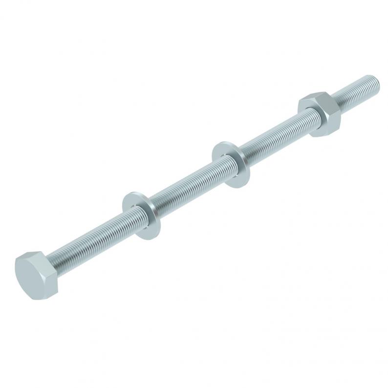Sechskantschraube zur universellen Befestigung von Konstruktionsbauteilen. Inklusive Sechskantmutter und 2 Unterlegscheiben.
