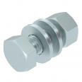 Sechskantschraube zur universellen Befestigung von Konstruktionsbauteilen. Inklusive Sechskantmutter und 2 Unterlegscheiben.