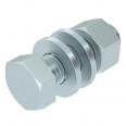 Sechskantschraube zur universellen Befestigung von Konstruktionsbauteilen. Inklusive Sechskantmutter und 2 Unterlegscheiben.