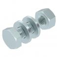 Sechskantschraube zur universellen Befestigung von Konstruktionsbauteilen. Inklusive Sechskantmutter und 2 Unterlegscheiben.