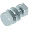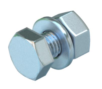 Sechskantschraube zur universellen Befestigung von Konstruktionsbauteilen. Inklusive Sechskantmutter und 2 Unterlegscheiben.
