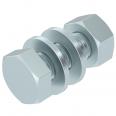 Sechskantschraube zur universellen Befestigung von Konstruktionsbauteilen. Inklusive Sechskantmutter und 2 Unterlegscheiben.