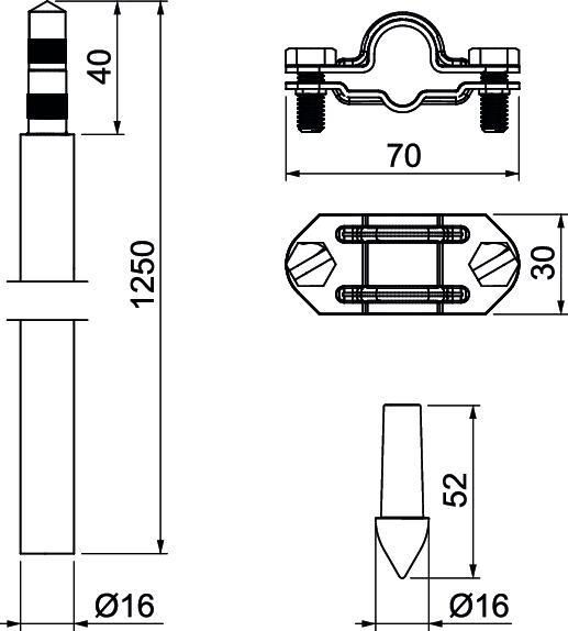 • 4 korrosionsbeständige Staberder Typ 219 16 ST V4A 1,25 m für insgesamt 5 m Tiefe