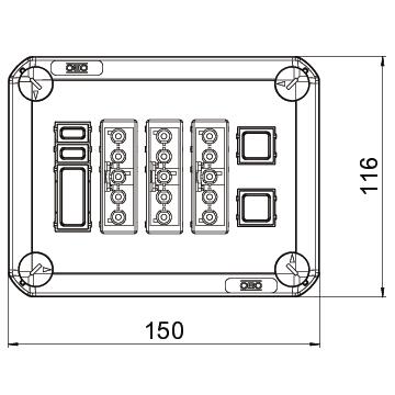 Steckbarer Deckel zum Verschließen von Kabelabzweigkästen, bestückt mit 3 Wieland GST18-Stecksystemen, vorverdrahtet mit Hebelsteckklemmen. Mit Schnellverschluss im Deckel, plombierbar. Halogenfreies Material, UV-resistent. Flammwidrig nach DIN EN 60695-2-11, Prüftemperatur 650°C. Schlagfestigkeit IK07 bei Raumtemperatur. Schutzart IP30.