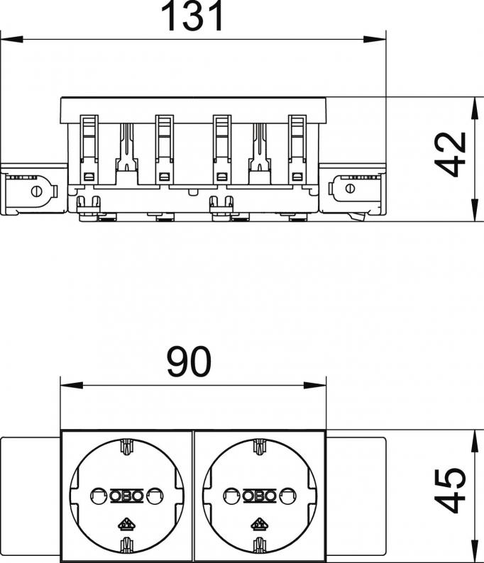 Steckdose 0°, Connect 45, Schutzkontakt, 2-fach