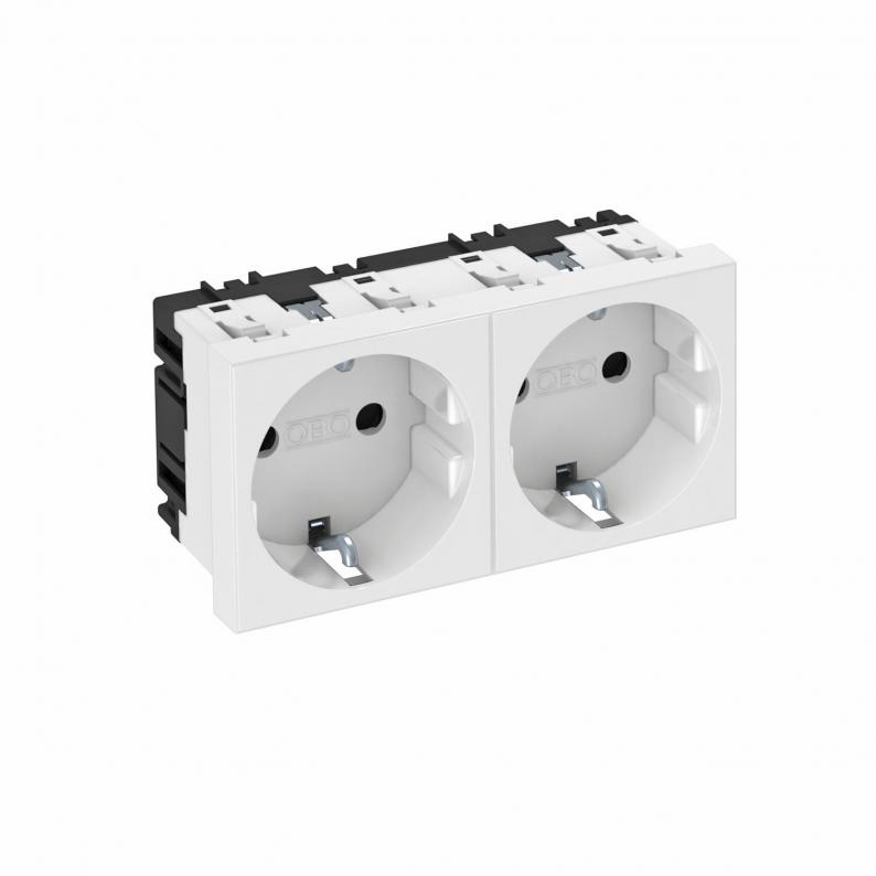 Schutzkontakt-Steckdose 2-fach 0°, mit erhöhtem Berührungsschutz, mit Steckklemmen, 2-polig, 16 A, 250 V~, mit Verbindungsklemmen nach IEC 60884-1.