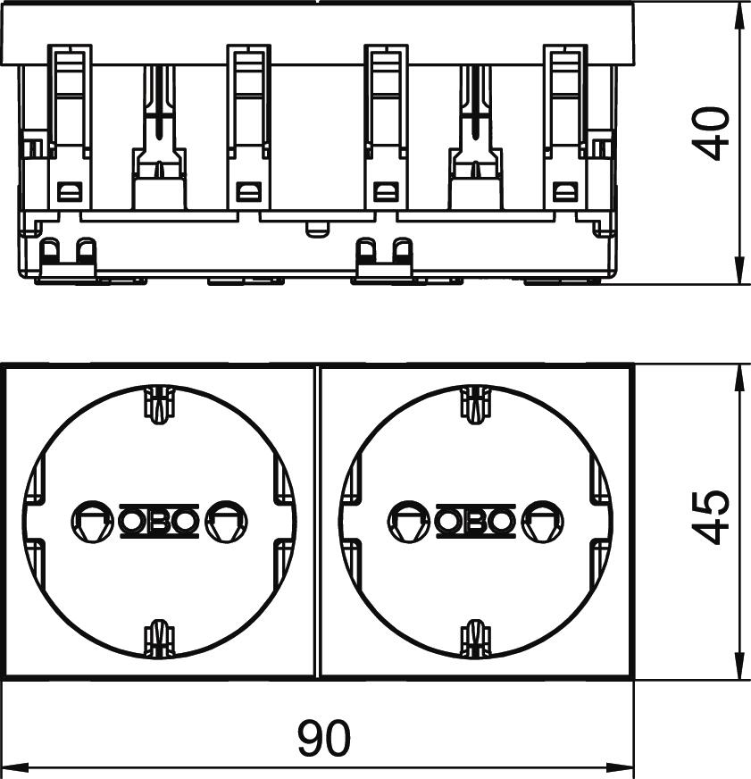 Schutzkontakt-Steckdose 2-fach 0°, mit erhöhtem Berührungsschutz, mit Steckklemmen, 2-polig, 16 A, 250 V~, mit Verbindungsklemmen nach IEC 60884-1.