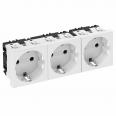 Schutzkontakt-Steckdose 3-fach 0°, mit erhöhtem Berührungsschutz, mit Steckklemmen, 2-polig, 16 A, 250 V~, mit Verbindungsklemmen nach IEC 60884-1.