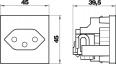 Steckdose 1-fach 0° nach Schweizer Norm (SEV), mit Steckklemmen, 2-polig, 10 A, 250 V~, Typ 13, mit Verbindungsklemmen nach IEC 60884-1.