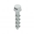 Steckdübel Delta-Push® zur Montage in der Elektroinstallation. Geeignet für Beton, Kalksandstein, Vollziegel, Hohllochziegel und Porenbeton. Werkzeuglose Montage durch Eindrücken in Bohrloch an Wand oder Decke. Ohne Schrauben. Mit Kabelbinderaufnahme bis 4,8 mm Breite und 2 mm Höhe zur Befestigung von Kabeln und Rohren.