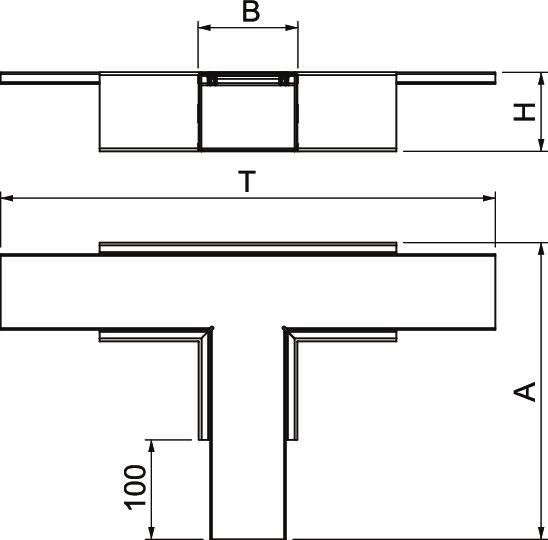 T-Abzweig mit intumeszierendem Brandschutzgewebe für Installationskanal PYROLINE® Rapid PLM. Geeignet für die direkte Wand- und Deckenmontage, Montage unterhalb von Systemböden und auf Tragsystemen. Werkzeuglose Stoßstellenmontage mit Stoßstellenverbinder PLM SI. Der Deckel wird werkzeuglos aufgerastet und ermöglicht eine schnelle Revision und Nachbelegung. Deckelüberstand ermöglicht versetzte Deckelmontage für durchgängigen Potentialausgleich der gesamten Kanalstrecke.