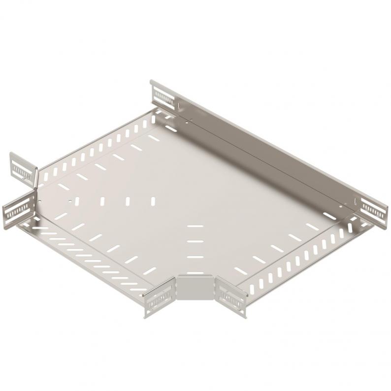 T-Stück zum Erstellen einer horizontalen Abzweigung, Formteil für rast- und schraubbare Kabelrinnen Seitenhöhe 60 mm. Schraubenlose Montage mit Doppelklemmen oder Schraubverbindung mit Flachrundschrauben FRS und Kombimuttern M6. Einsetzbar im Innen- und Außenbereich. Befestigungsmaterial muss separat bestellt werden.