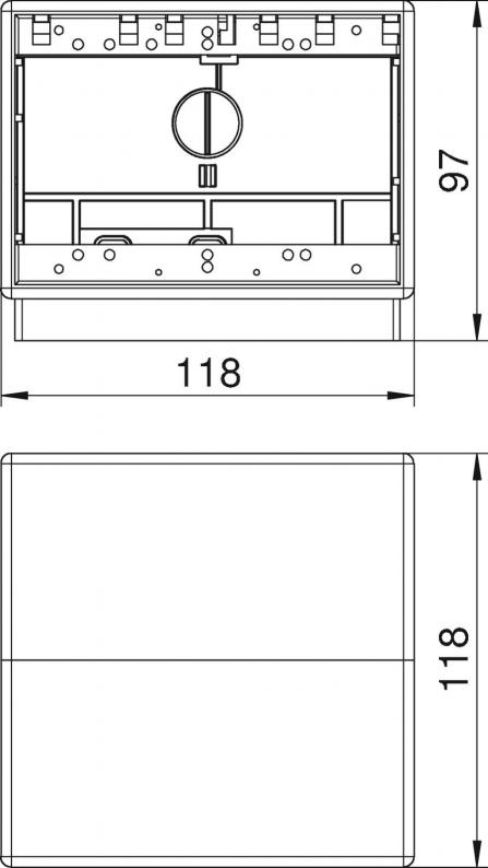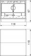 Zum kombinierten Einbau von 4 einzelnen Installationsgeräten mit Tragebügel (4 Installationsgeräte einer Stromart oder jeweils 2 Installationsgeräte zweier Stromarten). Die verschiedenen Stromarten werden durch eine Trennwand gegeneinander isoliert. Schraubbefestigungsspur für Installationsgeräte: 60 mm senkrecht.