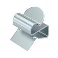 Trägerklammer zum Montieren von Kabeln. Offene Kabelaufnahme seitlich. Befestigung an Stahträgern durch Aufschlagen.