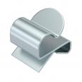 Trägerklammer zum Montieren von Kabeln. Offene Kabelaufnahme seitlich. Befestigung an Stahträgern durch Aufschlagen.