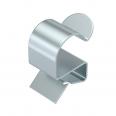 Trägerklammer zum Montieren von Kabeln. Offene Kabelaufnahme seitlich. Befestigung an Stahträgern durch Aufschlagen.