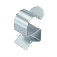 Trägerklammer zum Montieren von Kabeln. Offene Kabelaufnahme seitlich. Befestigung an Stahträgern durch Aufschlagen.