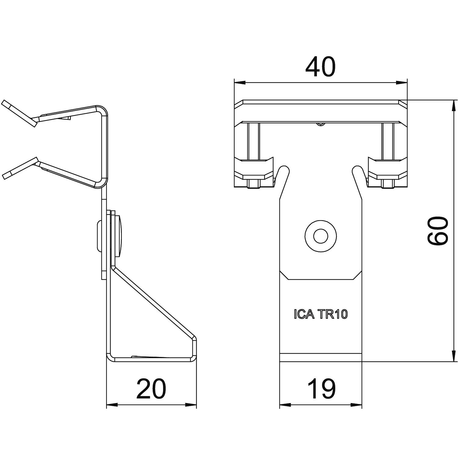 Trägerklammer mit Gewindestangenaufnahme für individuelle Montagelösungen. Befestigung an Stahträgern durch Aufschlagen.