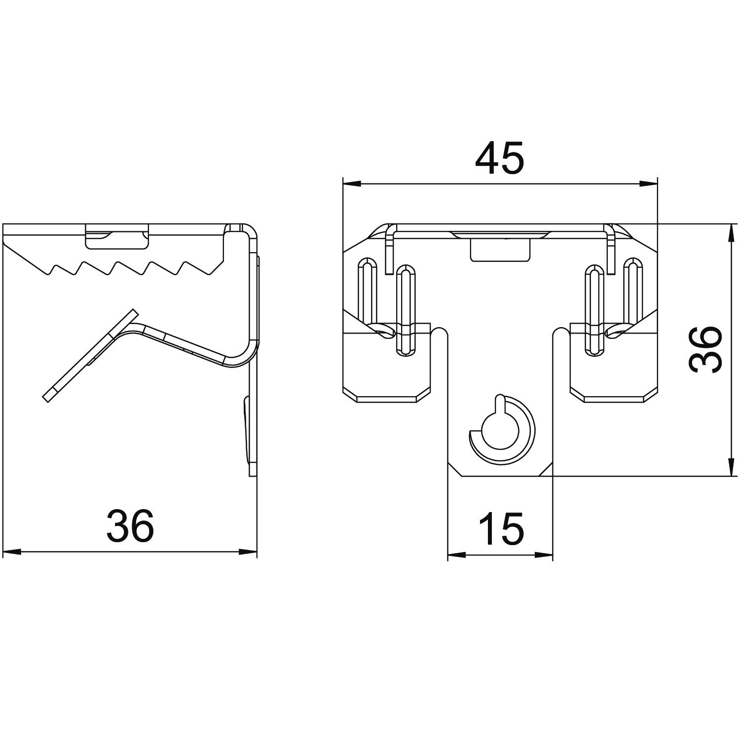 Trägerklammer mit Innengewinde M6 für individuelle Montagelösungen. Befestigung an Stahträgern durch Aufschlagen.