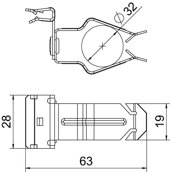 Trägerklammer zum Montieren von Rohren. Offene Rohraufnahme seitlich. Befestigung an Stahträgern durch Aufschlagen.