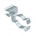 Trägerklammer zum Montieren von Rohren. Geschlossene Rohraufnahme seitlich. Befestigung an Stahträgern durch Aufschlagen.