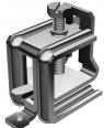 Trägerschraubklammer zur Befestigung von Bauteilen an Stahlprofilen, mit M6-Gewindebohrung zur Aufnahme von Gewindestangen. Fixierung am Stahlträger oder Flacheisen mit Druckwanne und Sechskantschraube M8, Schlüsselweite 13 mm.