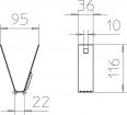 Bei Nutzung der vorgesehenen Löcher kann die Trapezbefestigung an eine Trapezprofilbreite bis zu ca. 80 mm montiert werden. Die Befestigung erfolgt mit dem Riegel Typ TPB R oder einer Sechskantschraube Typ SKS 10x110.