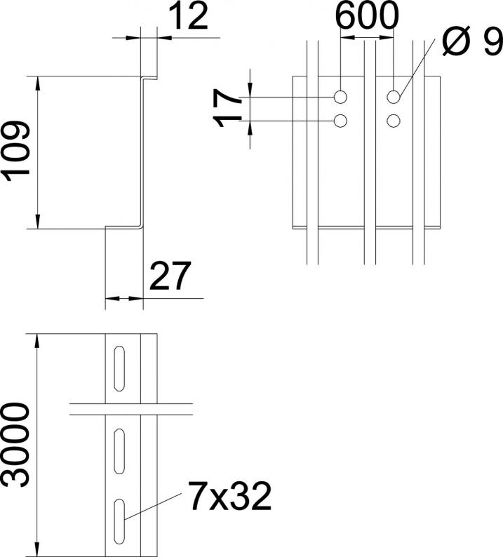 Trennsteg für das begehbare Kabelrinnen-System BKRS. Befestigung mit Flachrundschrauben M 6 x 12 mm in der Bodenlochung.