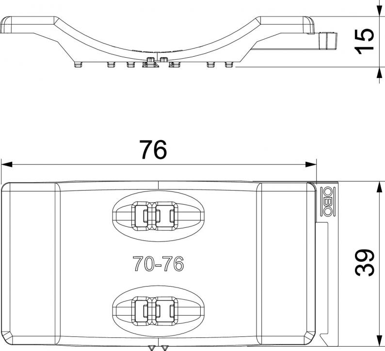 Unabhängig von der Schiene, universell einsetzbar durch Aufschieben auf einen Schenkel der Bügelschelle. Durch eine intelligente Kontur auf der Rückseite, kombinierbar zur Doppelwanne. Nachträgliche Installation ohne Demontage der Bügelschelle möglich.