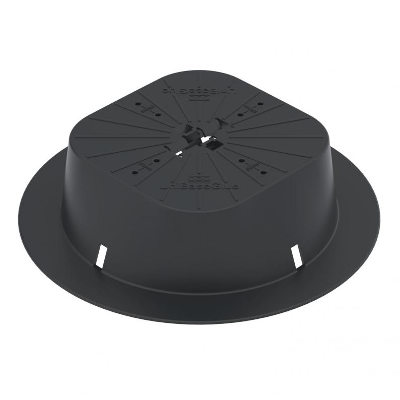 Universal-Standfuß zum Kleben auf Flachdächern. Einsetzbar zur Leitungsführung mit Kabelrinnen oder mit Gitterrinnen in Verbindung mit Dachleitungshalter 165 MBG HGRM. Klebemanschette muss passend zum Untergrund gewählt werden.