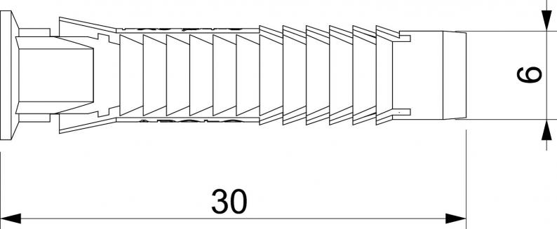 Auch als Hohlraumdübel geeignet, mit Kragen gegen Durchrutschen. 3 angesetzte Flossen nehmen das Drehmoment auf.