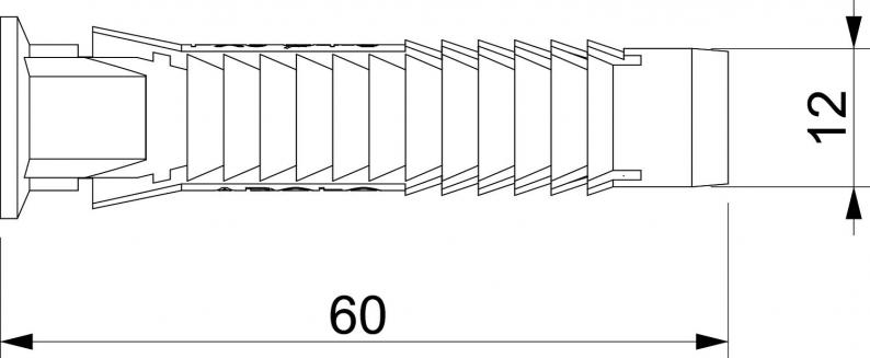 Auch als Hohlraumdübel geeignet, mit Kragen gegen Durchrutschen. 3 angesetzte Flossen nehmen das Drehmoment auf.