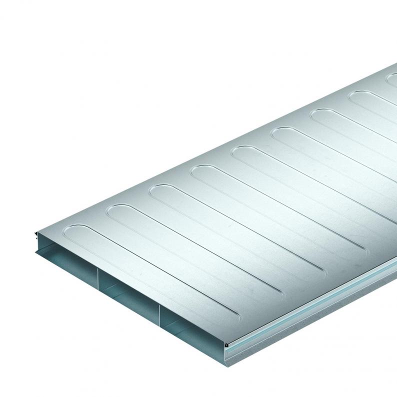 Unterflurkanal (2-teilig) zur Verlegung von Kabeln und Leitungen in estrichüberdeckten Unterflur-Systemen nach EN 50085-2-2. Abnehmbarer und durchgängig aufrastbarer Kanaldeckel. Mit Trennsteg im Kanalunterteil. Maximale Belastbarkeit bis 1,5 kN.