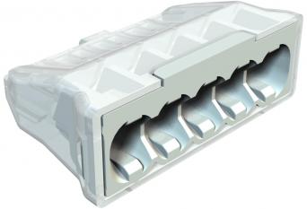 Das Innenleben der Hebelklemme ist aus einem einzigen Stück gefertigt. Dies sorgt für eine sichere und stabile Installation beim Verdrahten. Seitliche Rippen gewährleisten einen sicheren Halt beim Installieren. Unterhalb der Klemmverbindungen befindet sich eine leicht zugängliche Prüföffnung, die eine Einführung eines Phasenprüfers oder Prüfstifts von max. Ø 2mm ermöglicht.
