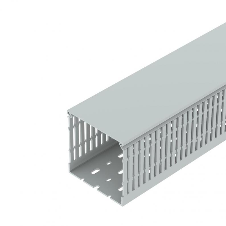 Halogenfreier Verdrahtungskanal inkl. Oberteil und Bodenlochung zur waagerechten und senkrechten Verlegung elektrischer Kabel und Leitungen im Schaltschrank. Mit doppelseitigen Klebeband am Kanalboden als Montagehilfe. Ausführung als metrischer Kanal. Das Ausbrechen der Stege erfolgt werkzeuglos. Sonderlängen auf Anfrage.