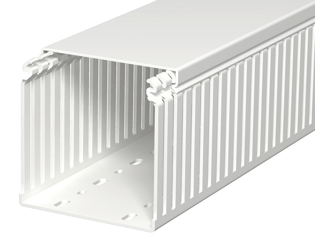Verdrahtungskanal nach DIN EN 50085-2-3 inkl. Oberteil und Bodenlochung zur waagerechten und senkrechten Verlegung elektrischer Kabel und Leitungen im Schaltschrank. Ausführung als DIN-Kanal. Das Ausbrechen der Stege erfolgt werkzeuglos. Bodenbündiges Ausführen ist durch Sollbruchstellen möglich. Geprüft nach DIN EN 50085-2-3. Sonderlängen auf Anfrage.