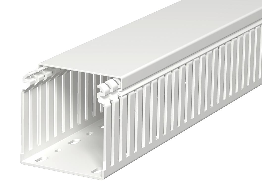 Verdrahtungskanal nach DIN EN 50085-2-3 inkl. Oberteil und Bodenlochung zur waagerechten und senkrechten Verlegung elektrischer Kabel und Leitungen im Schaltschrank. Ausführung als DIN-Kanal. Das Ausbrechen der Stege erfolgt werkzeuglos. Bodenbündiges Ausführen ist durch Sollbruchstellen möglich. Geprüft nach DIN EN 50085-2-3. Sonderlängen auf Anfrage.