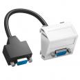 Multimediaträger mit einer VGA-Anschlussbuchse, Kabelauslass schräg, mit Beschriftungsfeld, kurzes VGA-Anschlusskabel (HD15) in Ausführung Buchse-Buchse. Träger mit Rastbefestigung, geeignet für den waagerechten und senkrechten Einbau in die Systemumgebung.