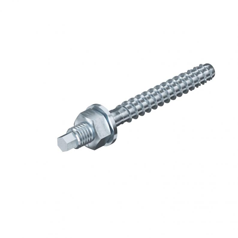Schraubanker zur direkten Montage ohne Dübel in gerissenem und ungerissenem Beton sowie Mauerwerk. Mit Anschlussgewinde und Unterlegscheibe zur Aufnahme großer Lasten. Geeignet für die Befestigung von Hängestielen und Wandauslegern in Durchsteckmontage.