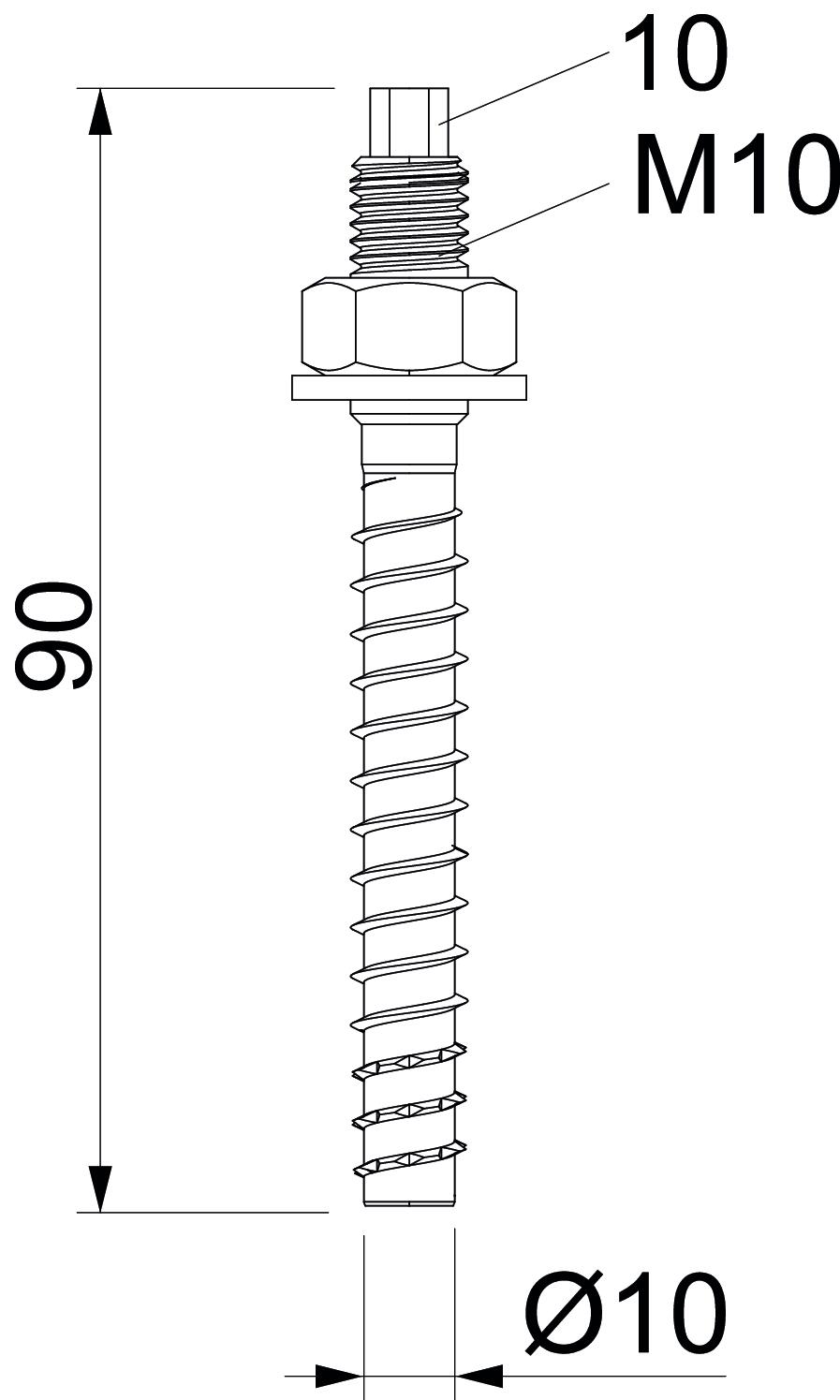 Vorsteckanker MMS-plus V 10x90, mit Anschlussgewinde