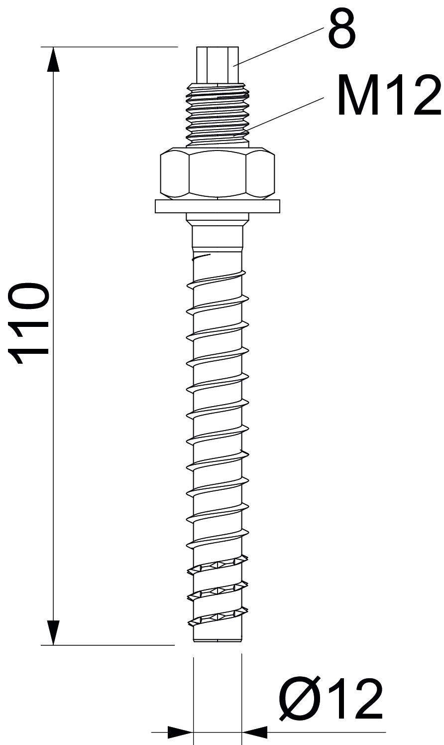 Vorsteckanker MMS-plus V 12x110, mit Anschlussgewinde