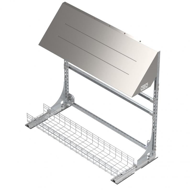 Wechselrichterrahmen zur geschützten Montage von mehreren Wechselrichtern für PV-Systeme Flachdach. Freistehend. Inklusive Gitterrinne zur Ballastierung und Kabelführung.