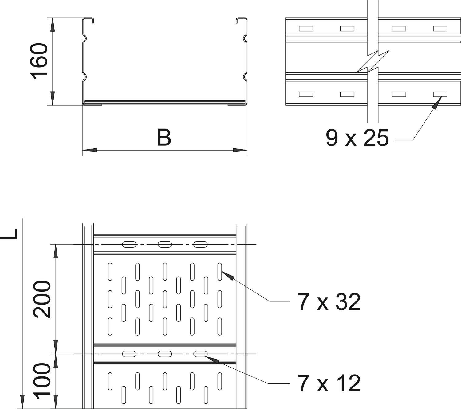 Weitspannkabelrinnen-System, gelocht, mit der Seitenhöhe 160 mm.