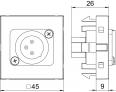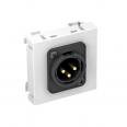 Multimediaträger mit einer XLR-Anschlussbuchse, Kabelauslass gerade, ohne Beschriftungsfeld, XLR-Stecker 3-polig mit Schraubanschluss. Trägerplatte mit Rastbefestigung, geeignet für den waagerechten und senkrechten Einbau in die Systemumgebung.