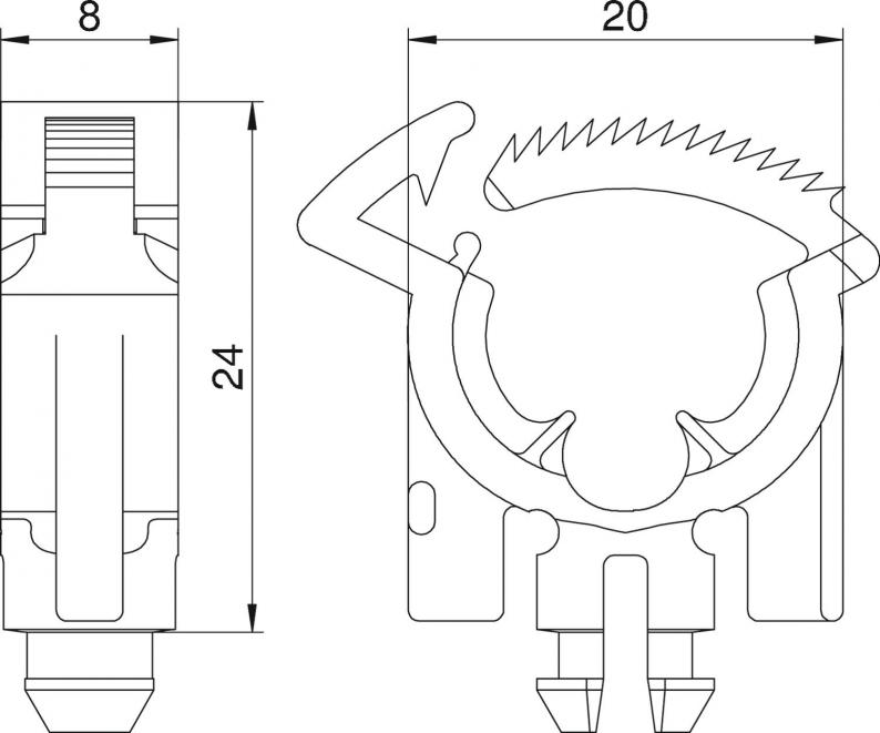 Zugentlastung zum Einsatz in Universalträger-Abdeckplatten, in Gerätebechern, Modulträger und Telitanks T4L und T8NL zur normgerechten Zugentlastung von zugeführten Leitungen.