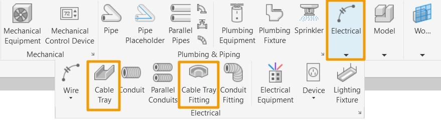 Das heruntergeladene System finden Sie im Revit unter der Kategorie Elektro und dort unter Kabeltrassen. Zusätzlich werden noch manuell zu platzierende Formteile mit bereitgestellt. Diese finden Sie im Bereich Kabeltrassenformteil.