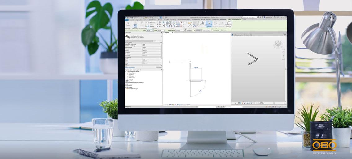 - Vollständige Systemplanung von OBO-Kabeltrassen oder Kabelleitern in Autodesk Revit